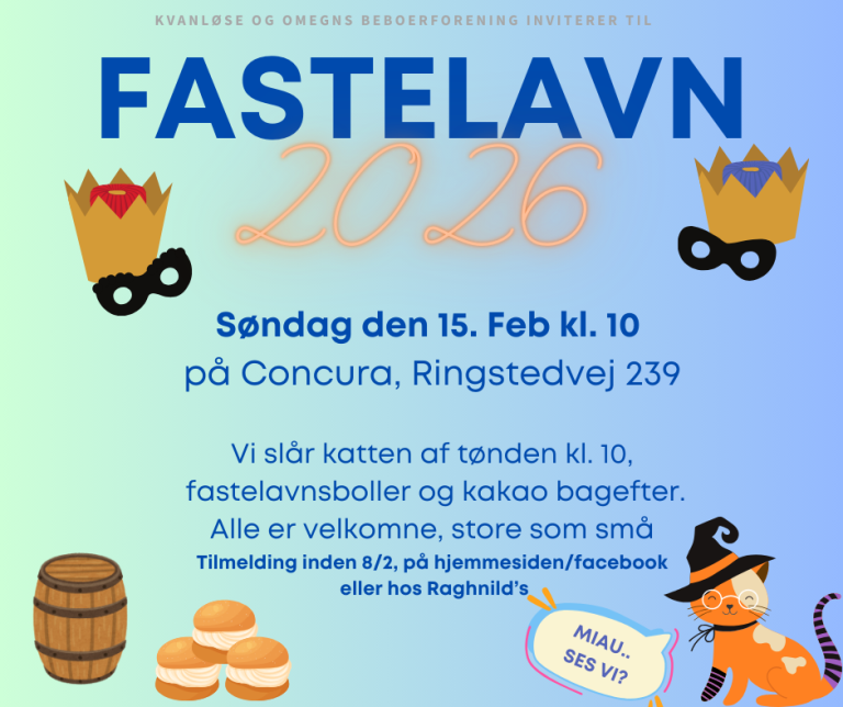 Vi slår katten af tønden på Concura, Ringstedvej 239. Vi slår katten af tønden kl. 10 Fastelavnsboller og kakao bagefter. Alle er velkomne, store som små sidste tilmelding 8/2 på denne link: